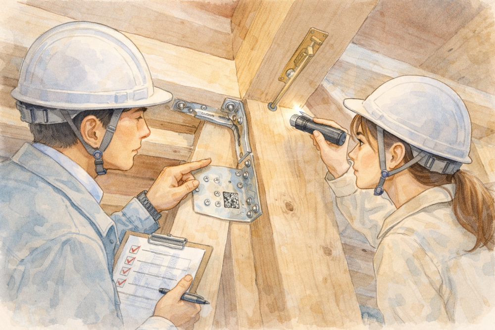 柱・梁の組み方、筋かいの配置、金物の取り付け状況などをチェックします。設計通りの耐震性能が確保されているかを見極めます。