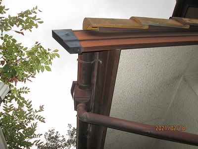 軒先が木製で水が廻り塗装が剥がれている場合、その部分が腐食して、支持金物が垂れて、勾配が変わっていることはよくあります。