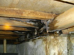 換気状況が悪く、湿気があり、土台にカビが付いている。換気状況を良くする必要がある。