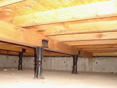 床組では、土台・大引き・根太の寸法や間隔、施工状態を確認します。不適切な場合には、補強や部材の追加が必要となります。あわせて、床組を支える束について、浮き・ガタつき・固定状況を確認することが重要です。